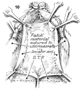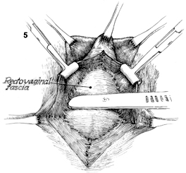or rectus fascia is sutured to the uterosacral ligaments, the rectovaginal
