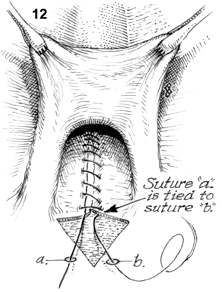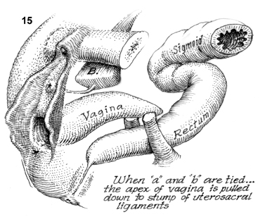 figure 12 are tied, the apex of the vagina is pulled down to the