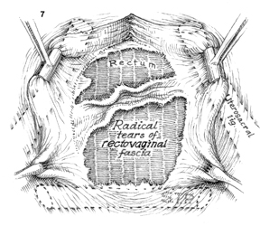 of the rectovaginal fascia. A simple suture repair is not adequate